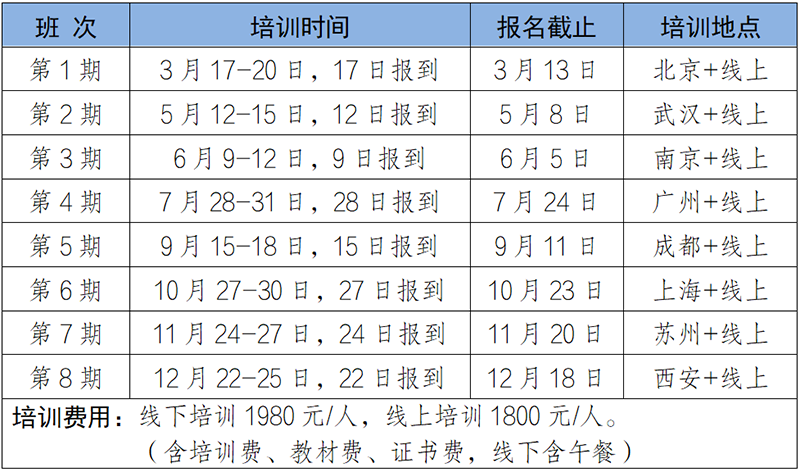 2026年培训课程基本均以线下+线上两种方式同时开展,学员可根据自身需求选择到培训现场或通过线上同步直播的方式进行学习。